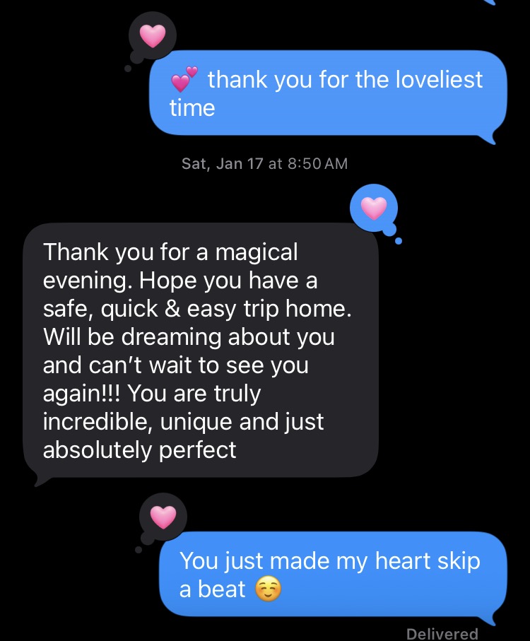 Dates ranging anywhere between 90 min to Overnights, Duos, Dinner dates, quickies, concerts, and more – and they keep getting better and better